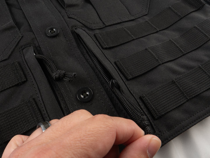 - 7 Storage Pockets Includes 2 chest, 2 lower, 2 hidden center chest, and 1 hidden upper chest pocket for secure storage of essentials.